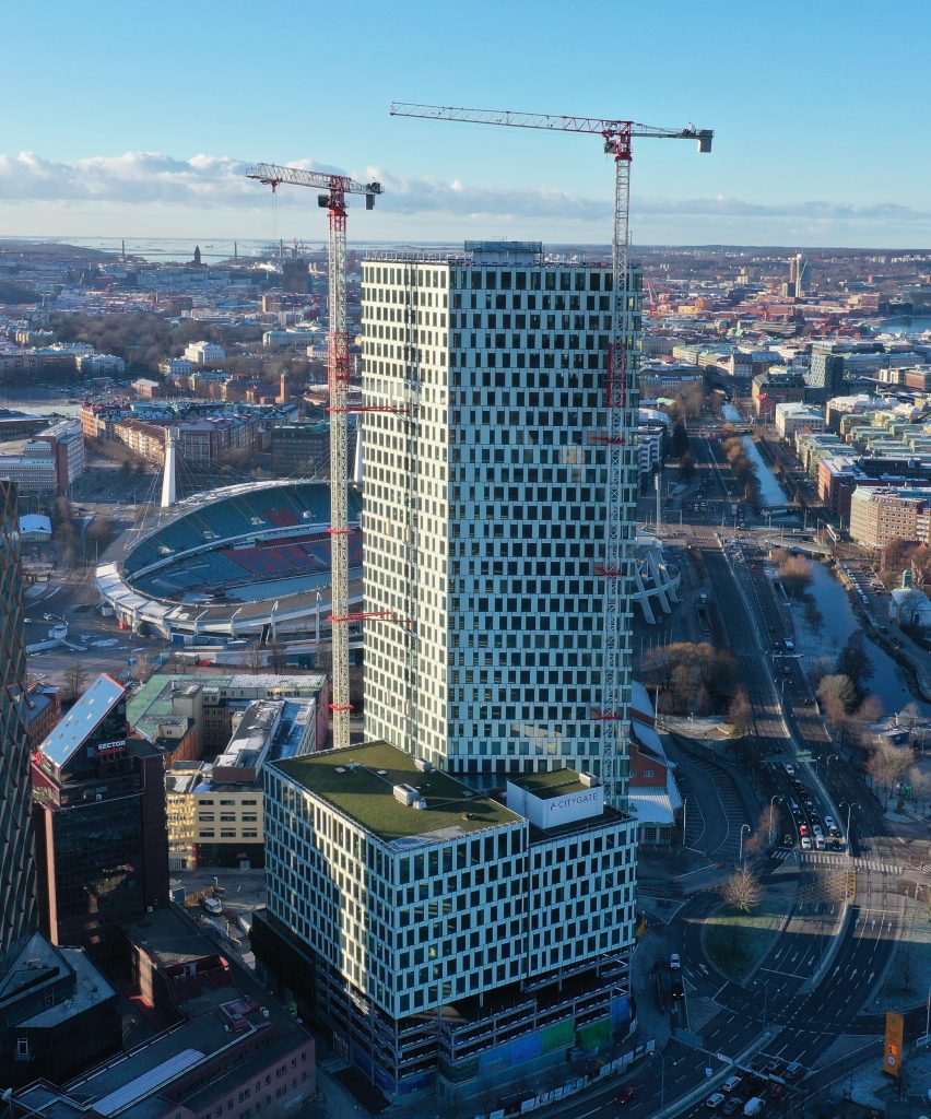 Nära Ullevi har Skanskas Citygate nått sin fulla höjd på 144 meter. Snart väntar inflyttning för de första hyresgästerna.